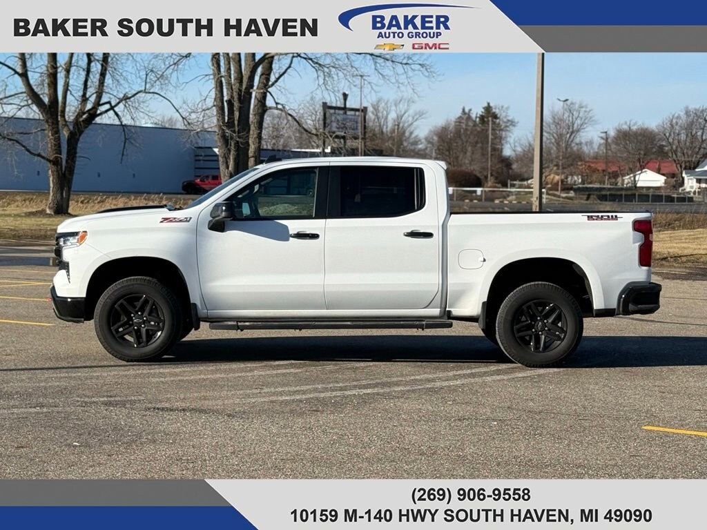 Summit White 2024 Chevrolet Silverado 1500 LT Trail Boss 4WD 10-Speed Automatic EcoTec3 5.3L V8 4WD, ONE OWNER, Silverado 1500 LT Trail Boss, 4D Crew Cab, EcoTec3 5.3L V8, 10-Speed Automatic, 4WD, Jet Black Cloth, 10-Way Power Driver Seat w/Lumbar, 12.3 Multicolor Reconfigurable Digital Display, 120-Volt Bed Mounted Power Outlet, 120-Volt Interior Power Outlet, 6-Speaker Audio System, All-Weather Floor Liner (LPO) (AAK), Auto High-beam Headlights, Auto-Locking Rear Differential, Bluetooth® For Phone, Chevrolet Connected Access Capable, Chevytec Spray-On Black Bedliner, Color-Keyed Carpeting Floor Covering, Convenience Package, Deep-Tinted Glass, Dual Rear USB Ports (Charge Only), Dual-Zone Automatic Climate Control, Electric Rear-Window Defogger, Electrical Steering Column Lock, Electronic Cruise Control, EZ Lift Power Lock & Release Tailgate, Following Distance Indicator, Forward Collision Alert, Front LED Fog Lamps, Fully automatic headlights, HD Rear Vision Camera, Heated Driver & Front Outboard Passenger Seats, Heated Power-Adjustable Outside Mirrors, Heated Steering Wheel, Heavy-Duty Air Filter, High Gloss Black Mirror Caps, Hill Descent Control, Hitch Guidance, Inside Rear-View Mirror w/Tilt, Keyless Open & Start, LED Cargo Area Lighting, OnStar & Chevrolet Connected Services Capable, Performance Red Recovery Hooks, Power Front Windows w/Driver Express Up/Down, Power Front Windows w/Passenger Express Down, Power Rear Windows w/Express Down, Preferred Equipment Group 2LT, Protection Package, Rear 60/40 Folding Bench Seat (Folds Up), Rear Wheelhouse Liners, Remote Vehicle Starter System, SiriusXM w/360L, Standard Tailgate, Steering Wheel Audio Controls, Suspension Package, Theft Deterrent System (Unauthorized Entry), Trailering Package, Wi-Fi Hot Spot Capable, Wrapped Steering Wheel.