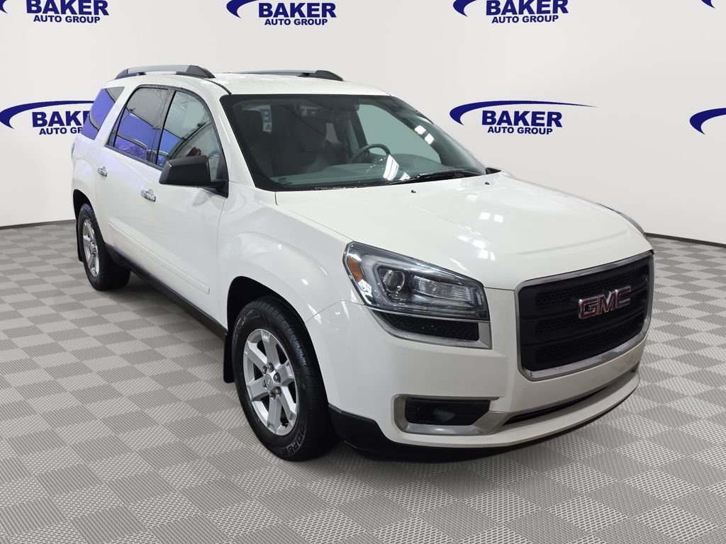 Discover the versatile and well-equipped 2014 GMC Acadia SLE-2, a midsize SUV that offers the perfect blend of style, comfort, and capability. This exceptional vehicle is ready to elevate your driving experience and accommodate your every need.- Heated driver and front passenger seats- Custom molded front and rear splash guards- Acoustical Insulation Package- 8-way power driver's seat- Leather-wrapped steering wheel- Remote vehicle start- Tilt & telescopic steering column- Power rear liftgate- Integral spotter blind-zone mirrors- Constant effort power steering- 6-speaker audio system- Single-zone manual front climate control- 2-way power front passenger seat- Power windows with driver express-downThe Acadia SLE-2 is powered by a potent 3.6L V6 SIDI engine, delivering a smooth and efficient performance with its 6-speed automatic transmission and available all-wheel drive. Enjoy an exceptional fuel economy of 16 city and 23 highway MPG, making this SUV an excellent choice for your daily commute or weekend adventures.Step inside the well-appointed cabin and experience the refined comfort that the Acadia SLE-2 has to offer. The premium cloth seating, ample cargo space, and convenient features like the power liftgate and remote start ensure a pleasant and versatile driving experience. The Acadia's impressive safety technologies, including OnStar Directions & Connections, provide added peace of mind on the road.Whether you're transporting the family, hauling gear, or seeking a capable and stylish SUV, the 2014 GMC Acadia SLE-2 is the perfect choice. Visit our showroom today and let us demonstrate how this exceptional vehicle can enhance your driving lifestyle. We're confident you'll be impressed by its exceptional value and the seamless ownership experience we provide.