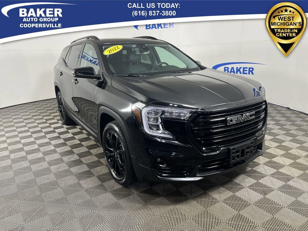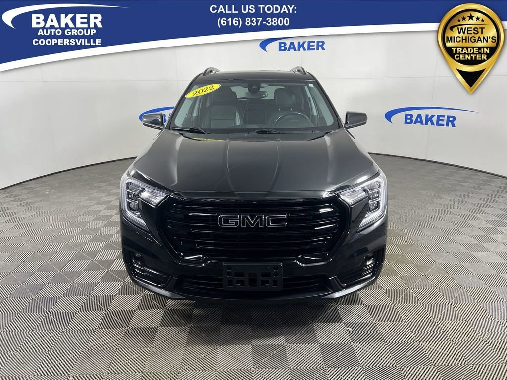 New Price! Ebony Twilight Metallic 2022 GMC Terrain SLT AWD 9-Speed Automatic 1.5L DOHC Non-Smoker, ONE Owner, no accidents, CARFAX CERTIFIED,, CAR BRAVO CERTIFIED - 12 month/12,000 mile Limited Bumper to Bumper Warranty!, Terrain SLT, 1.5L DOHC, 9-Speed Automatic, AWD, Ebony Twilight Metallic, Black Leather, 6-Way Power Front Passenger Seat, 8-Way Power Driver Seat Adjuster, Adaptive Cruise Control, Black GMC Center Caps w/Red GMC Lettering, Black Mirror Caps, Bluetooth® For Phone, Darkened Front Grille, Elevation Edition, Front Passenger 2-Way Power Lumbar, GMC Pro Safety Plus, Heated front seats, Heated steering wheel, Infotainment Package II, Lane Change Alert w/Side Blind Zone Alert, License Plate Front Mounting Package, Memory seat, Power Driver Lumbar Control, Power driver seat, Power Liftgate, Preferred Equipment Group 4SA, Premium 7-Speaker Bose Sound System w/Amplifier, Radio: GMC Infotainment Audio System w/Navigation, Rear Cross-Traffic Alert, Rear Park Assist, Roof-Mounted Luggage Rack Side Rails, Safety Alert Seat, Skyscape Power Sunroof w/Power Sunscreen, Wheels: 19 x 7.5 Gloss Black Painted Aluminum, Wireless Apple CarPlay/Wireless Android Auto.