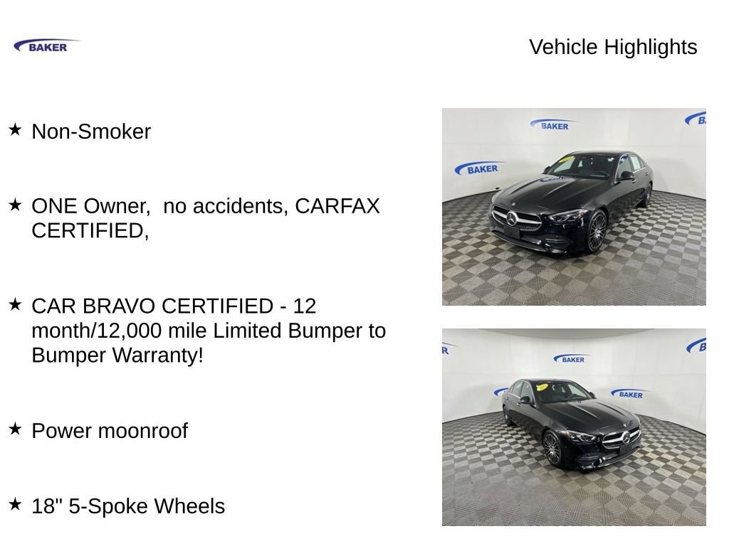 Obsidian Black Metallic 2025 Mercedes-Benz C-Class C 300 4MATIC® 4MATIC® 9-Speed Automatic 2.0L I4 Turbocharged Non-Smoker, ONE Owner, no accidents, CARFAX CERTIFIED,, CAR BRAVO CERTIFIED - 12 month/12,000 mile Limited Bumper to Bumper Warranty!, C 300 4MATIC®, 4D Sedan, 2.0L I4 Turbocharged, 9-Speed Automatic, 4MATIC®, 18 5-Spoke Wheels, Panorama Roof, Power moonroof.